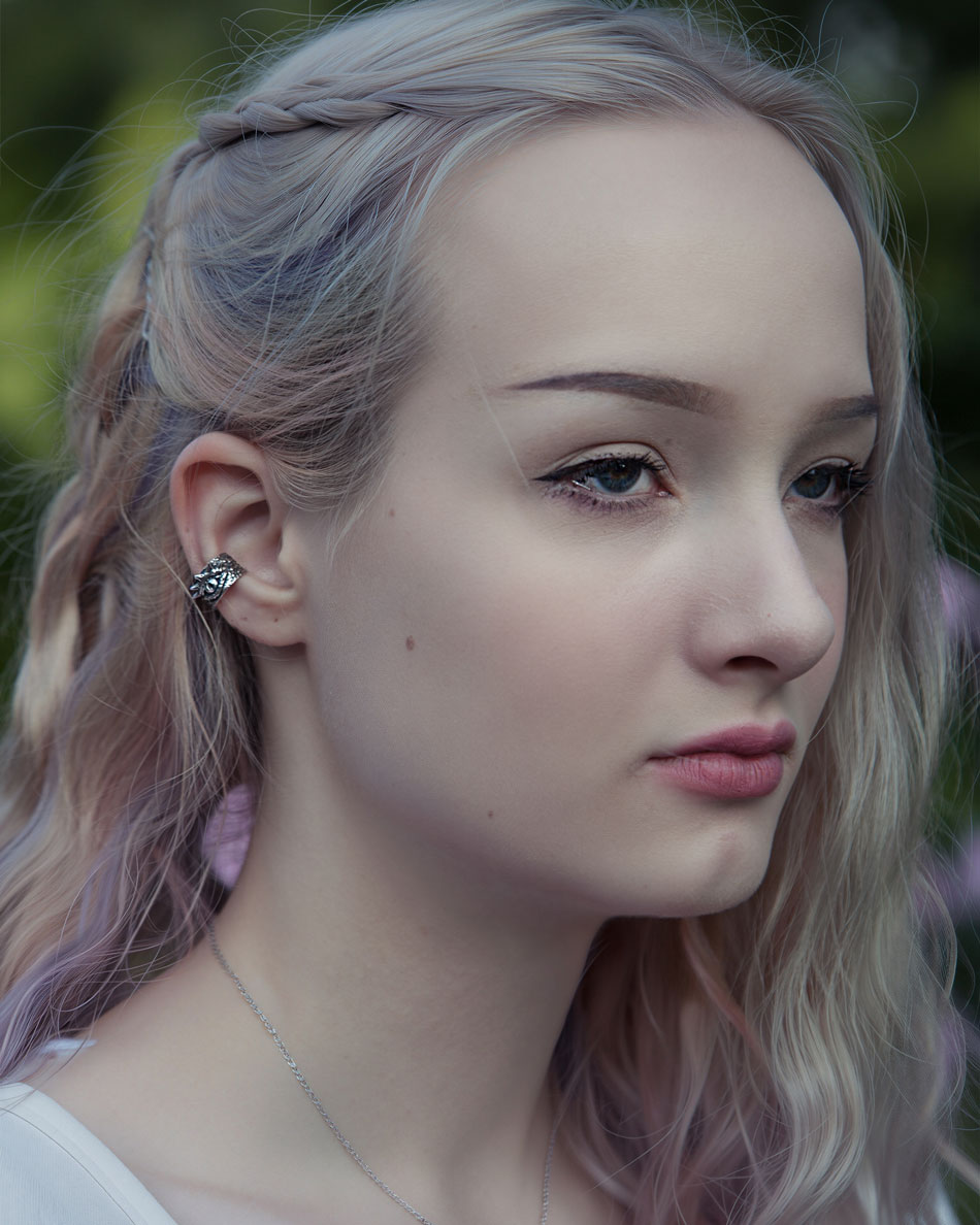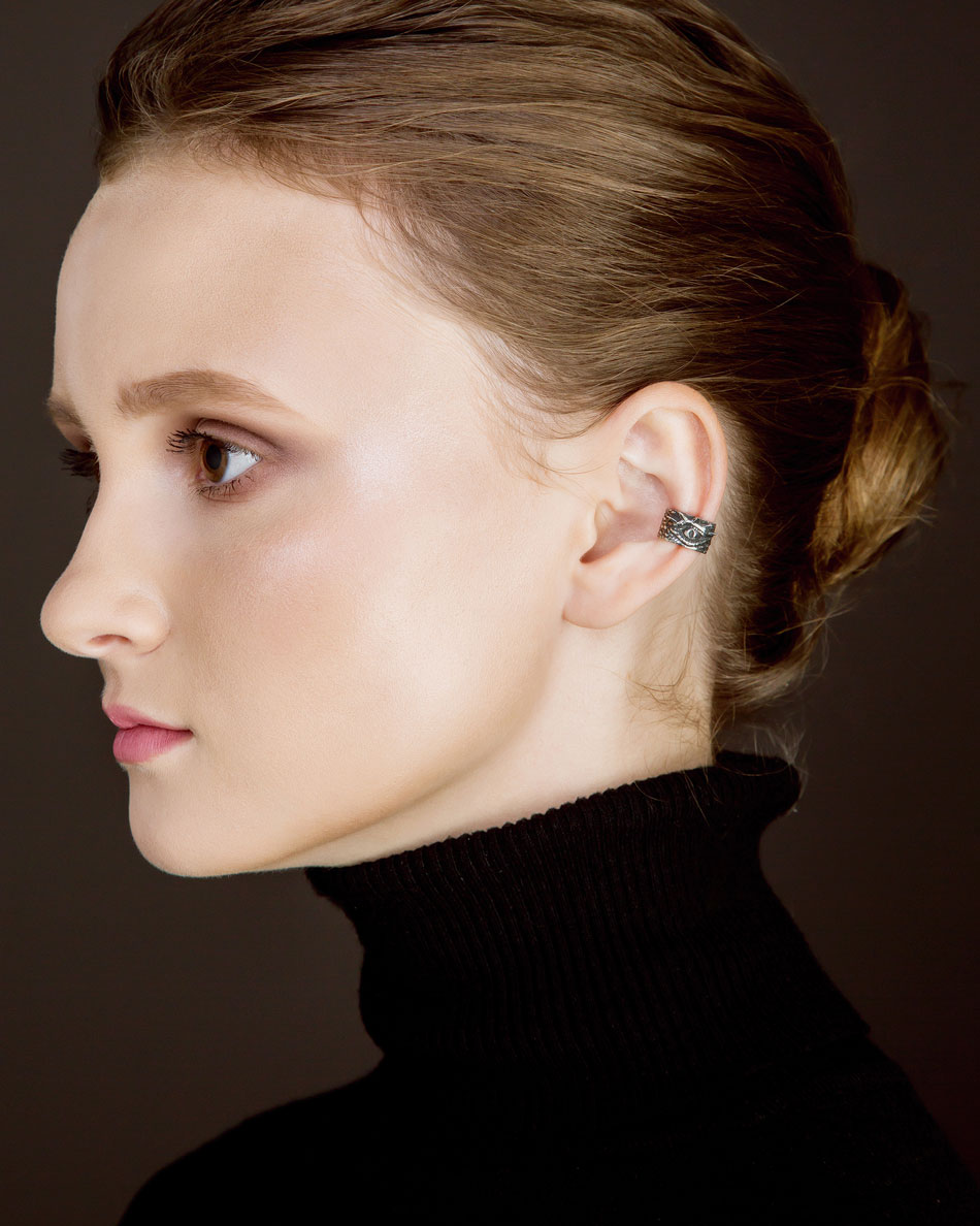 The ear cuff follows the natural curve of the ear for a secure and comfortable grip. The size adjusts with a gentle squeeze, so it sits firmly without the need for a piercing. You can choose a left-side version, a right-side version, or order a matching pair for a balanced look.