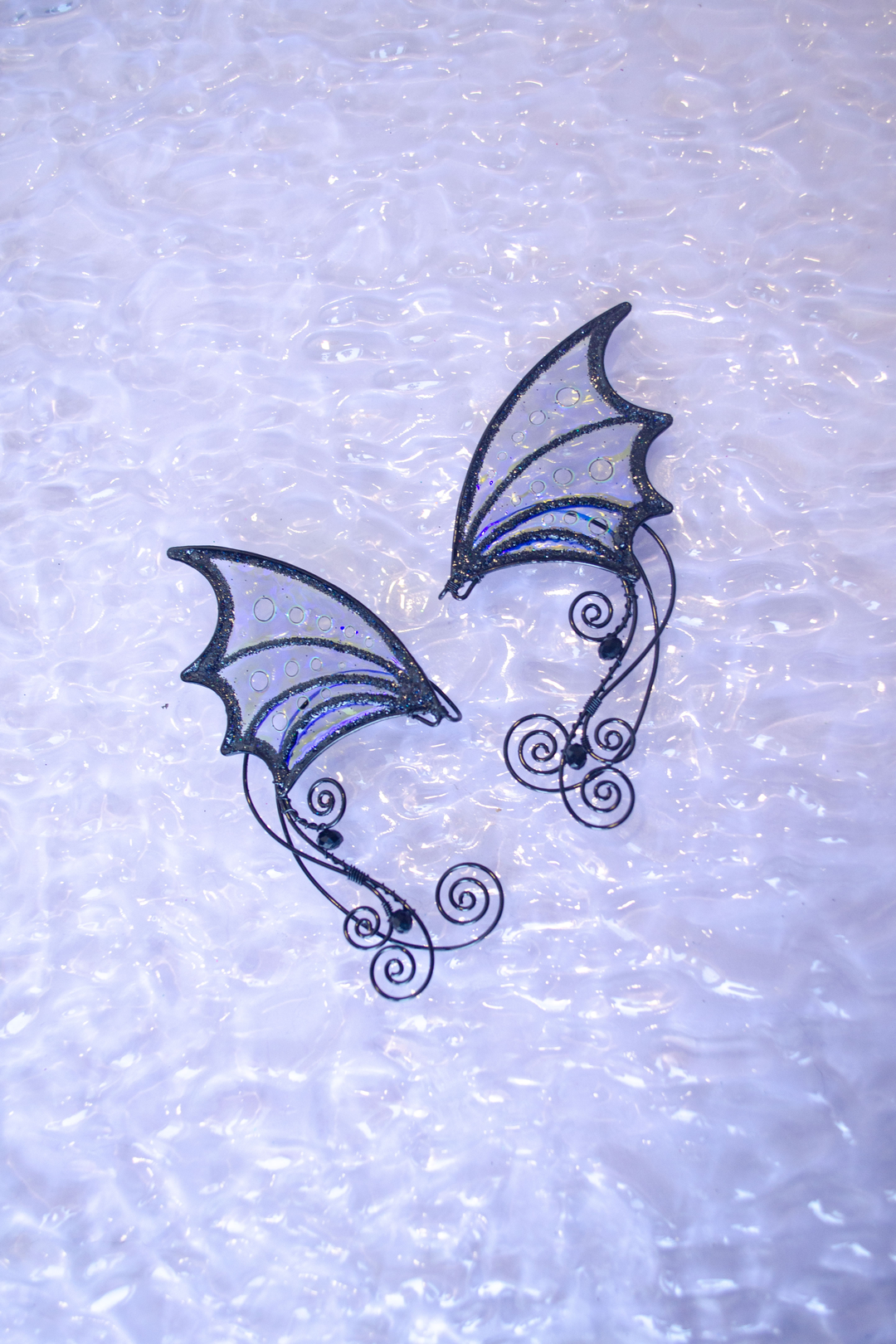 Gothic bat ear cuff with rafted in black wire and angelina film, that sparkles with magic colors of purple.